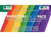 L’appuntamento, rivolto ai delegati e agli attivisti della Cisl e agli studenti dell’associazione universitaria, sarà un momento di confronto e riflessione sul valore del dialogo, della solidarietà, della pace e della dignità umana in tempi segnati da guerre e conflitti. L’iniziativa si inserisce nel percorso della mobilitazione civile nazionale “Maratona per la Pace”, promossa da Cisl nazionale, che sta attraversando tutto il Paese con eventi locali e regionali e culminerà sabato 15 novembre a Roma con l’Assemblea nazionale. Un cammino collettivo per ribadire che nessuna guerra è inevitabile, ogni conflitto può trovare una via di dialogo, e la dignità della vita umana deve restare il fondamento di ogni futuro possibile.